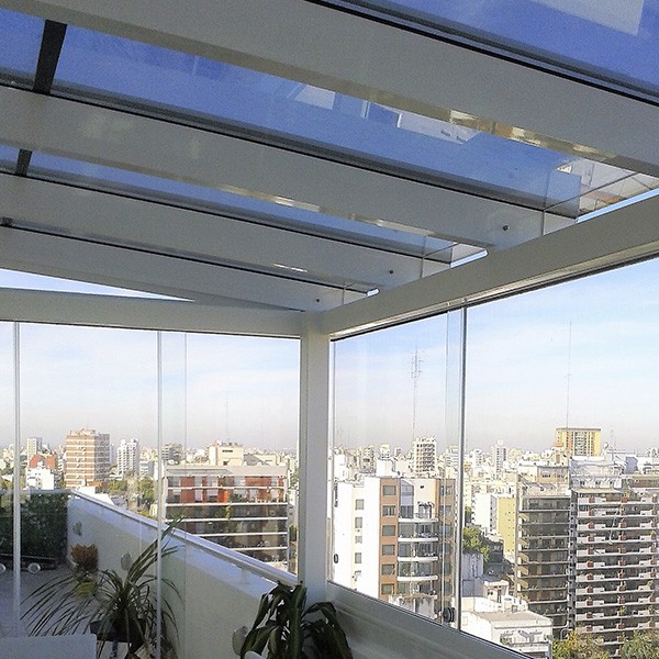 Descripción: Sistema de techos de paños fijos versátil, estético y seguro que permite mediante una amplia variedad de diseños, lograr ambientaciones de máxima luminosidad y transparencia. Es un producto totalmente a medida, y se complementa con los cerramientos Balconfort y Balconflex en casos como últimos pisos o espacios descubiertos en donde hay que construir una estructura y techo para soportar dichos sistemas. Estos techos vidriados logran aprovechar el espacio, la vista y la luz al máximo, siempre con la mayor seguridad.